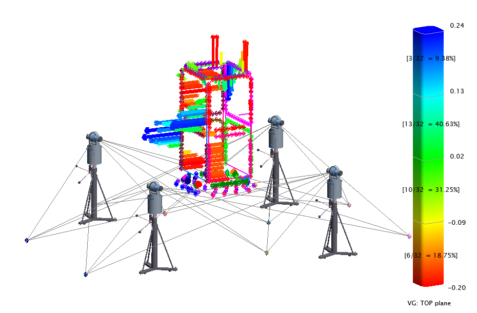 良實工業采用具有百分之百追溯性的先進測量系統來協助粒子加速器的客戶完成控制網的標定與布局(左圖案例直徑約240M)。控制網的意義在于將粒子加速器世界坐標系植入到各個部件,保證每一個部件在安裝、調整和改造時都可以找到世界坐標系,從而保證了粒子加速器的全局精度。良實工業不僅協助客戶標定與布局控制網,同時還幫助客戶完成粒子加速器部件的安裝與調整,目前已在中國成功完成多次粒子加速器的測量項目。